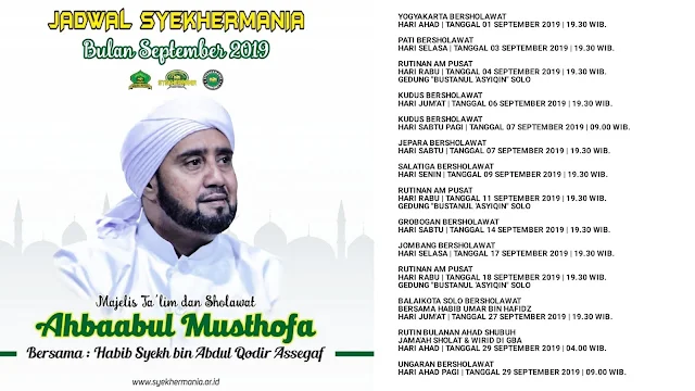 Jadwal Syechermania dan Ahbaabul Musthofa bersama Maulana Habib Syekh Assegaf bulan September 2019